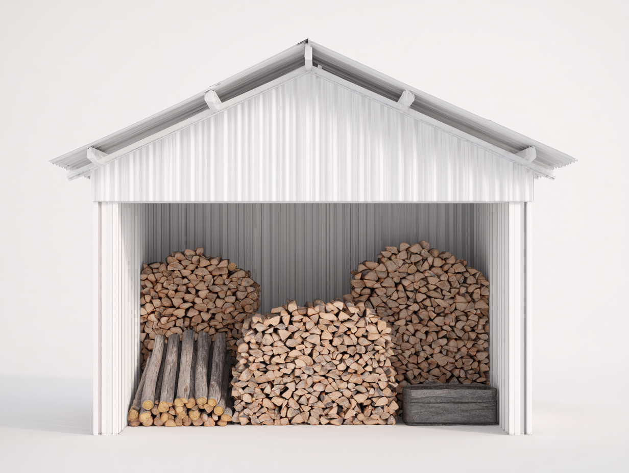 Il tetto rigido inclinato aiuta a proteggere la legna dalle precipitazioni. Le superfici laterali e posteriori schermate contribuiscono alla stabilità del contenuto mentre l'apertura frontale consente un accesso agevole.